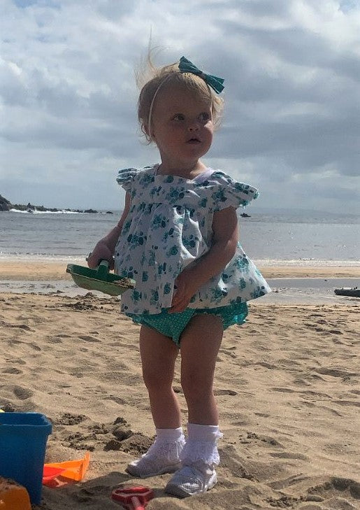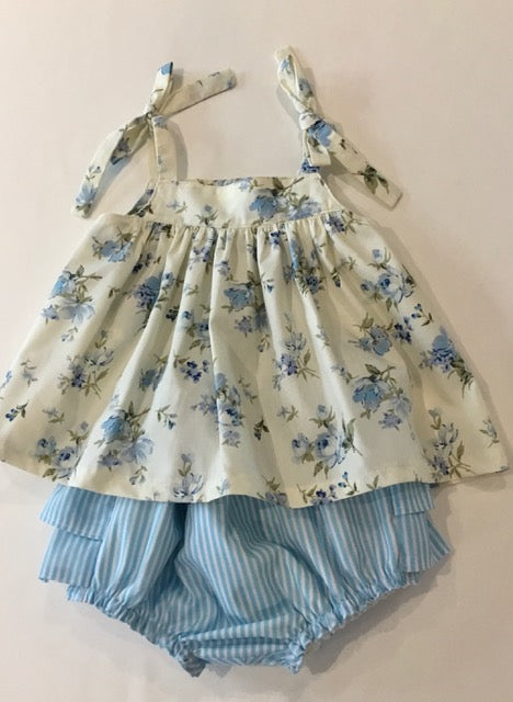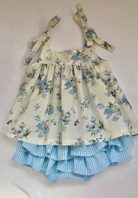 The Cora 2 piece combines a tie shoulder, floaty top with a ruffle bum bloomer.
