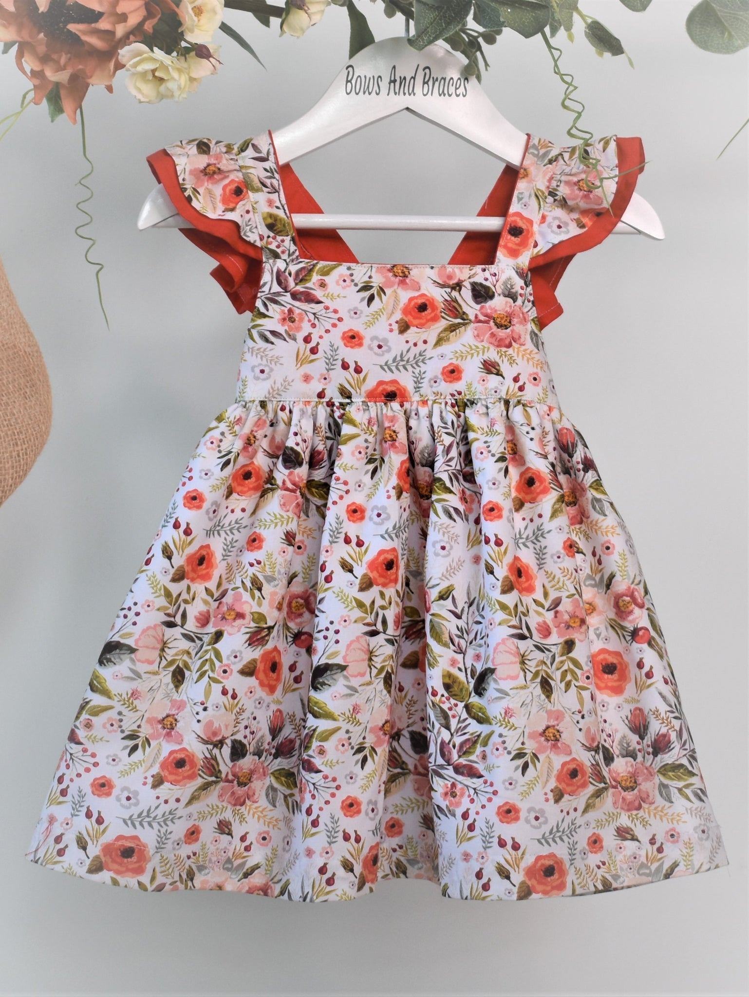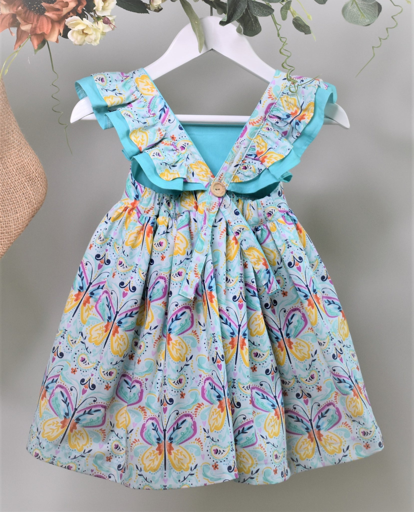 The Edith dress can be used simply as a summer dress, add flutter/double flutter shoulder and/or lace for a touch of luxury. Straps have three button holes to allow for growth. Layer it with a blouse or t shirt and it can be worn all year round